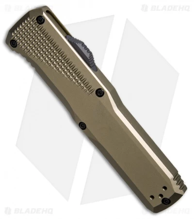 This 4600-1 Phaeton OTF model is outfitted with a flat dark earth anodized handle and a satin finished blade made from S30V steel. The Benchmade Phaeton successfully combines speed and style in a sleek tactical everyday carry automatic. It has a spine-fire sliding button that offers quick blade access when deployment time is critical. The sturdy handle is made from a billet of 6061-T6 aluminum with a flat dark earth anodized finish. Subtle texturing along the top scale improves grip on the smooth handle without being abrasive. A reversible deep-carry pocket clip completes the tactical EDC design.