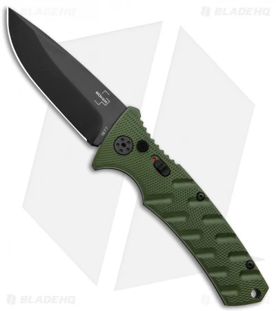 Boker Plus Strike Drop Point Automatic Knife OD Green (3.25″ Black D2)
