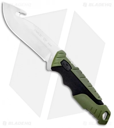 Buck set out to create a quality mid-range hunting fixed blade that could handle a wide range of multi-purpose tasks, and the successful end result was the Pursuit Series. This large model has a 4.5″ blade with a guthook and a green GFN handle with a grippy Versaflex overlay. A high performance grip is further aided by finger grooves and thumb rest jimping. The blade has a guthook spine and a deep curved belly for field dressing applications. The Buck Pursuit offers a dependable hunting fixed blade designed for maximized outdoor performance.