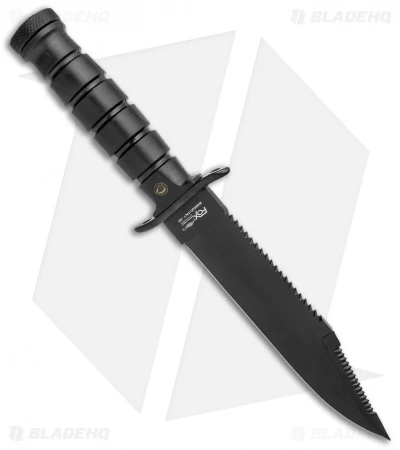 Built to withstand the harshest uses and environments, the Fox Military Explorer fixed blade knife is a utilitarian tool for any forward operator. Durable C70 carbon steel is with black cerakote finish features a clip point blade with sawback and serrated clip design. Stainless steel finger guard prevents contact with any foreign objects while in use. Stored in the pommel is a small survival kit for when times get rough. Sturdy black ABS handles are comfortable in hand while providing a solid grip. Carry the Military Explorer with the included black leather sheath with integrated leg strap and sharpening stone.