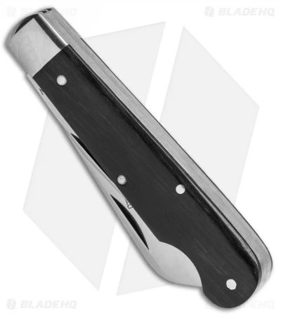 This Tidioute Cutlery Crown Lifter Boy’s Knife features a sheepsfoot blade and a bottle opener that doubles as a flat head screwdriver. The handle is fitted with ebony wood scales and a nickel silver bolster.