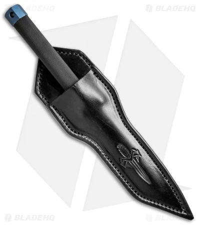 This Marfione Custom A.D.O. (Alpha Detachment Operative) features a double edged dagger blade with a black DLC coating and an Apocalyptic finish. The ADO has a Chris Reeve style hollow handle made from a solid billet of 154-CM stainless steel. It can be accessed by unscrewing the glass breaker tip which is made from blue anodized titanium. The A.D.O. includes a custom black leather sheath with the Marfione Dagger logo.