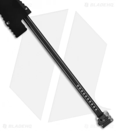 This Nemesis IV knife has a black anodized aluminum handle that features a milled contoured surface. Microtech has also customized the hardware with the triangle screws and triangle “topographical” firing button. The dagger blade is stone wash finished S35-VN steel with one side fully serrated.